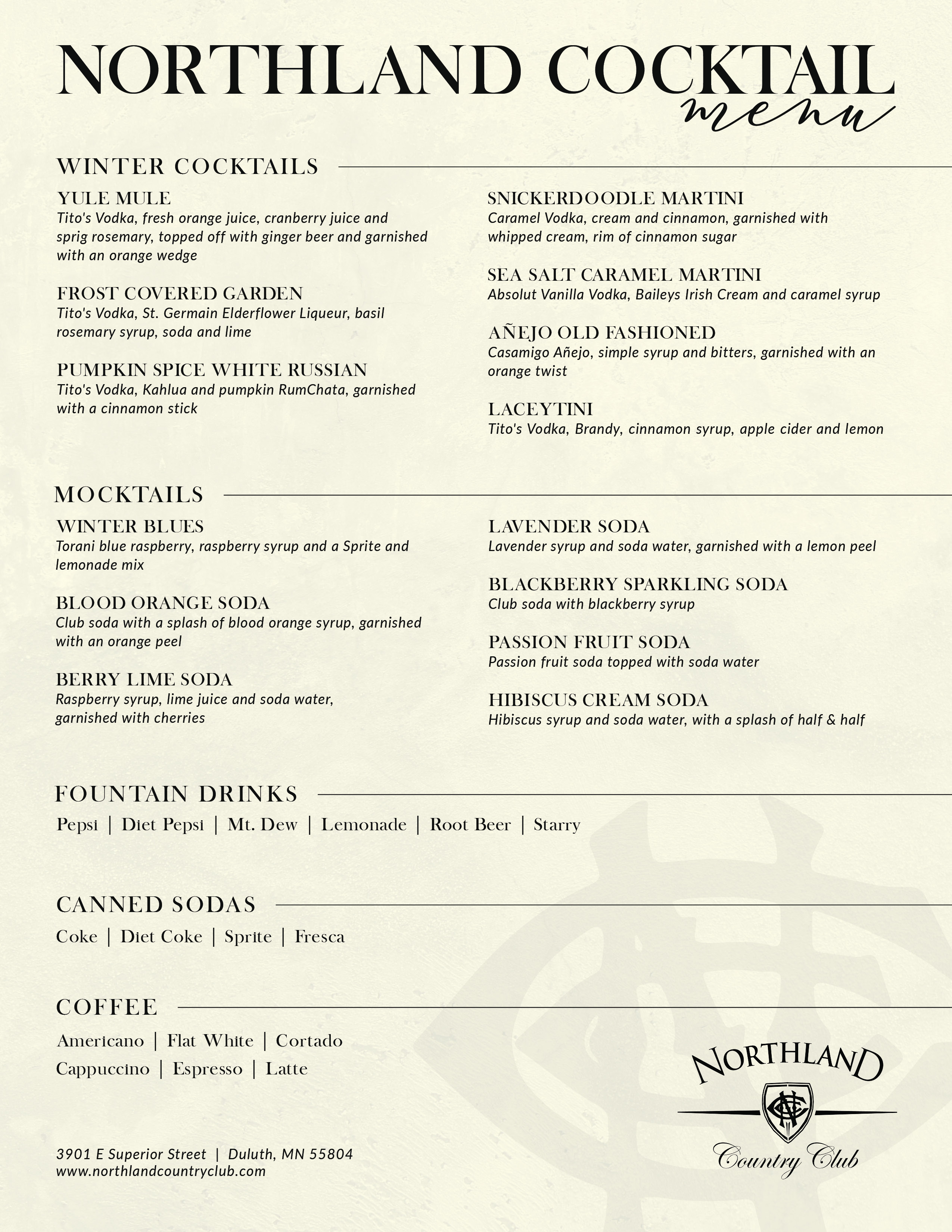 Northland strives to provide the best in food, beverage, service, and atmosphere. Please contact us with any questions or for additional information.
